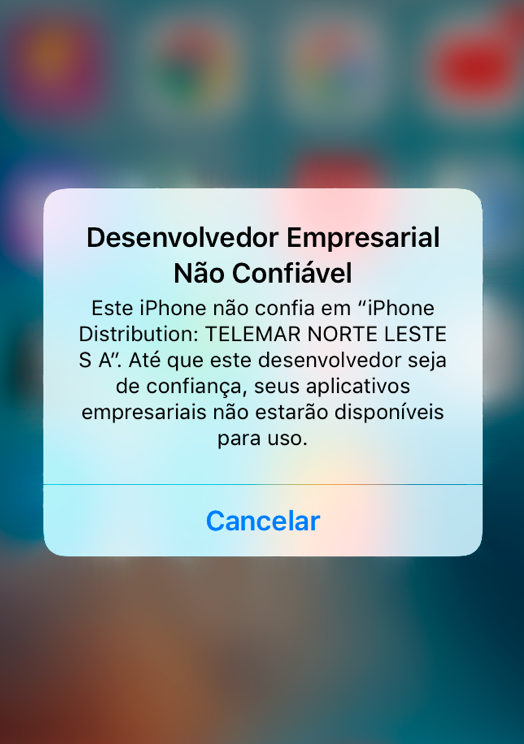 Ao tentar abrir o aplicativo, aparecerá uma notificação. Clique em cancelar e toque em Ajustes > Geral > Perfis ou Gerenciamento de Dispositivos e Perfis